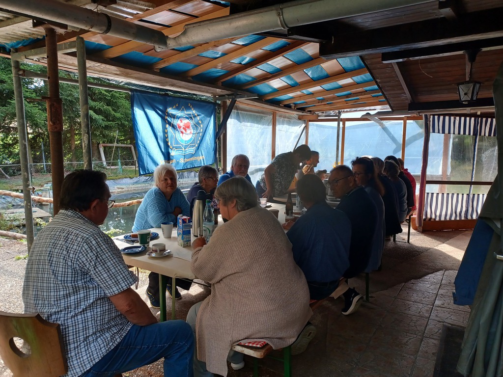 25 gutgelaunte IPA-Freundinnen und -Freunde ließen es sich zunächst bei Kaffee & Kuchen gutgehen und konnten anschließend wahlweise die geräucherten Forellen von Ernst oder leckere Steaks und Würste vom Grill genießen.