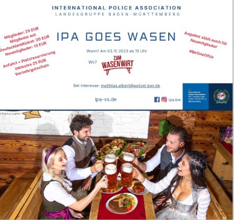 Am 03.10.2023 war es wieder soweit: die IPA aus ganz Baden-Württemberg traf sich im Festzelt zum Wasenwirt auf dem Canstatter Wasen.