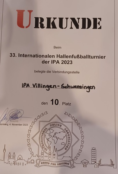 Vom 03.-05.11.2023 war die IPA Nürnberg Gastgeber des 33. Internationalen Hallenfußballturniers, welches wir im Jahr 2019 in Villingen-Schwenningen organisiert hatten. Leider litt in diesem Jahr die Internationalität ein wenig, lediglich die österreichische Mannschaft aus Hartberg hielt diese Fahne noch hoch. Die Mannschaften der IPA Pavia und IPA Skien, die jahrzehntelang dabei waren, bekommen offenbar aus Spielermangel keine Mannschaft mehr zusammen. Neu im Teilnehmerkreis waren die IPA Bremerhafen und die Bundespolizei Nürnberg.