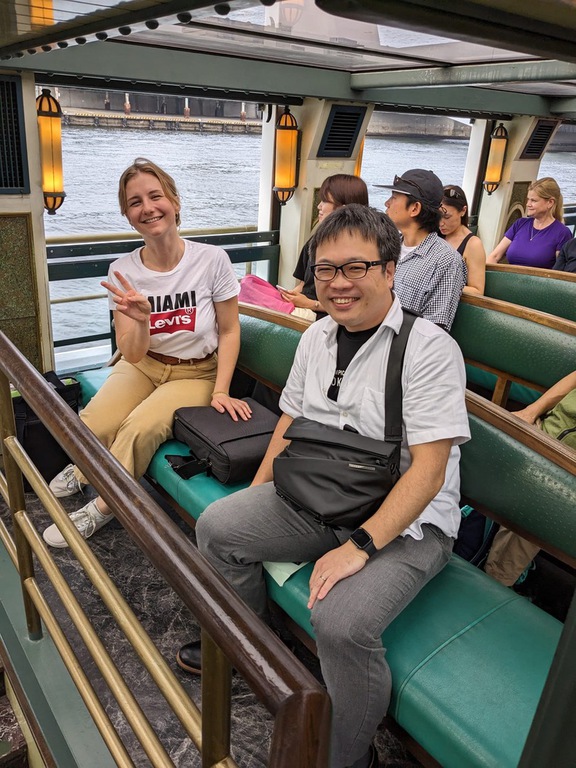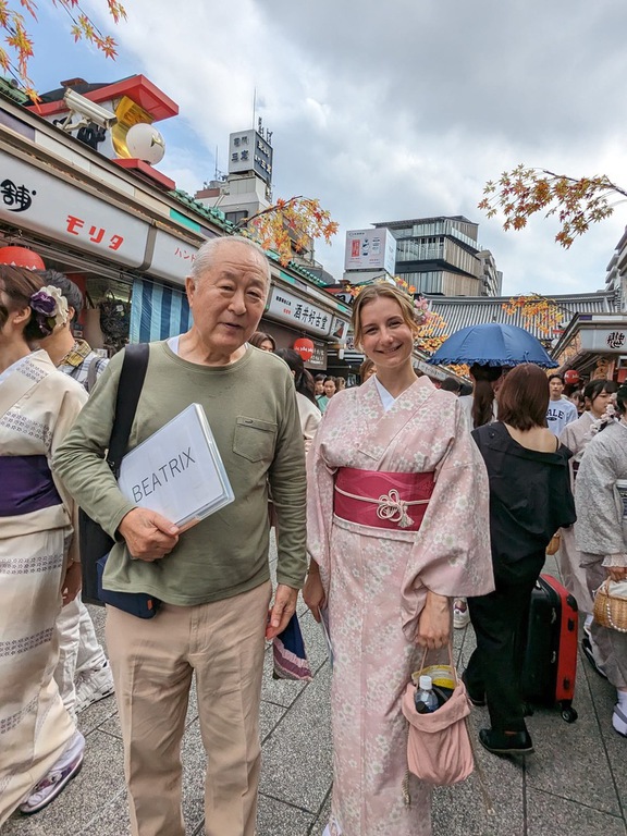 Tag 1: Nach einem leckeren, traditionellen japanischen Frühstück geht es auch schon um kurz nach Neun, überraschender Weise ohne Jetlag, los. Ich leihe mir im Stadtteil Asakusa einen Kimono bei einem der zahlreichen Kimono-Rental Shops aus, lasse mich frisieren und treffe mich sodann mit einer Fotografin, die mit mir beim berühmten Sensoji-Tempel ein kleines Fotoshooting durchführt. Nachdem ein paar andere Touristen auf Anfrage Fotos mit mir gemacht haben, treffe ich mich auch schon mit Herrn Nozaki, ehemaliger IPA- Vorstand von Tokio und seiner lieben Begleitung und IPA-Unterstützerin Moeka. Wir besichtigen in aller Ruhe den Sensoji-Tempel sowie die Einkaufspromenade Nakamise in Asakusa. Beim Tempel lasse ich mir mein Schicksal durch ein Omikuji, einem kleinen, weißen Zettelchen, welches ich gegen eine Spende von 100 Yen erwerben konnte, vorhersagen. Doch der erste Omikuji versprach mir ein nicht so ganz schmackhaftes Schicksal, weshalb Hr. Nozaki mir erklärte, ich solle dieses einfach an den bereitstehenden Zaun gleich nebenan festbinden, damit diese Vorsehung nicht wahr wird, und mir ein neues Omikuji ziehen. Dieses versprach auch schon ein besseres Schicksal und ich darf das Omikuji mitnehmen. Nach einer kurzen Stärkung in Form von Ningyo Yaki, einem kleinen Gebäck, das an Waffel erinnert aber in unterschiedlichen, niedlichen Figürchen gebacken und mit einer süßen roten Bohnen Paste, aus der sog. Azuki Bohne, gefüllt ist, verabschieden Hr. Nozaki und ich uns von Moeka und geben meinen Kimono ab. Anschließend treffen wir uns mit Hr. Sasaki, einem Architekten und IPA-Unterstützer, beim Pier des Sumida Flusses und machen eine Bootsfahrt. Am Ufer des Sumida Flusses befinden sich viele Kirschbäume, die während der Blütezeit von vielen Menschen begehrt werden, erklärt mir Hr. Nozaki. Unsere Bootsfahrt endet beim Hamarikyu Garden. Hr. Nozaki und Hr. Sasaki erklären mir, dass dieser Garten der berühmten Shogun Familie Tokugawa gehörte, und dem Kaiserpalast u.a. als Jagdgebiet diente. Auch haben wir heute Glück, denn normalerweise muss man Eintritt bezahlen. Während wir durch den Garten schlendern und die beruhigende Atmosphäre genießen, treffen wir auf drei weitere Kollegen und begeben uns ins Einkaufsviertel Ginza. Dort machen wir Halt bei einem Schreibwaren- und Bastelgeschäft und ich kaufe mir echtes, japanisches Briefpapier.