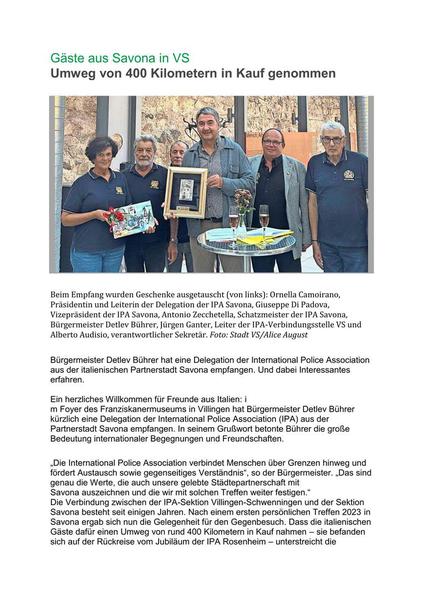 Hier noch der Link zum Pressebericht der Stadt Villingen-Schwenningen https://www.schwarzwaelder-bote.de/inhalt.gaeste-aus-savona-in-vs-umweg-von-400-kilometern-in-kauf-genommen.560c5f78-2372-4091-badd-a34778087886.html