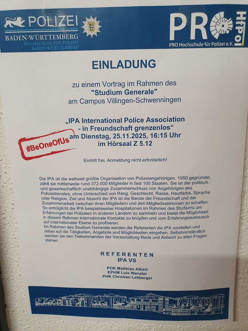 Für alle IPA-Mitglieder oder auch Interessenten an der HfPol BW in Villingen-Schwenningen.